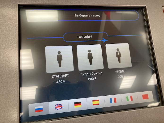 スタンダードクラスの乗車料金は、片道450ルーブル(≒675円)となっています。