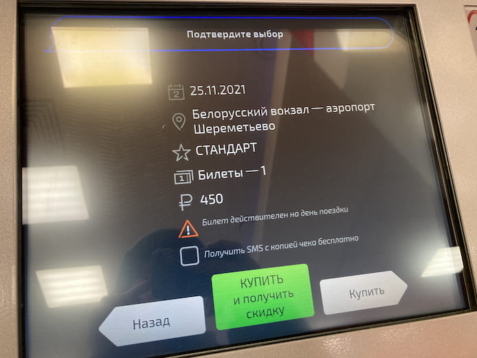 - 区間:ベラルースキー駅→シェレメーチエヴォ国際空港